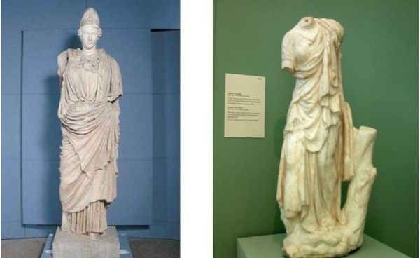 Numerose le rappresentazioni di Atena, tra di esse quella, enorme, in un unico blocco di marmo, posta a un’estremità della navata. L’opera, alta 2,83 metri, è una replica della statua di Atena realizzata da Kresilas nel 430 a.C.