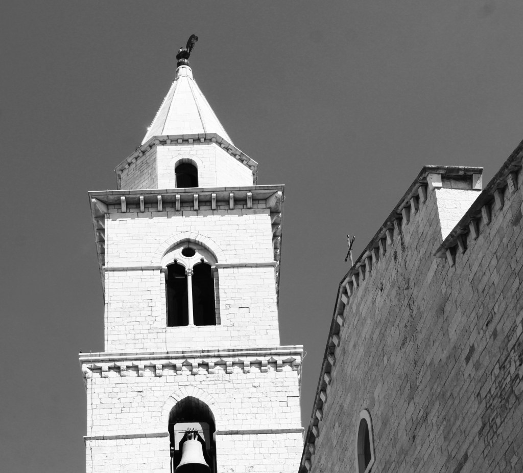 Il campanile della Cattedrale di Andria si distingue per la sua struttura slanciata in pietra chiara, articolata su più livelli con bifore, cornici marcapiano e cuspide terminale. Inserito nel complesso medievale della cattedrale, rappresenta uno degli elementi più riconoscibili del profilo urbano cittadino ed esprime i caratteri essenziali dell’architettura romanica pugliese, fatta di composizioni equilibrate, decorazioni sobrie inserite in costruzioni solide