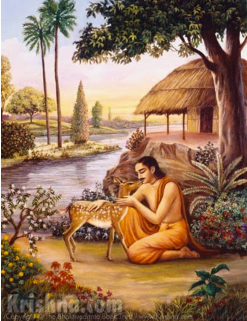 In una famosa narrazione dello Shrimad bhagavatam si ricorda la storia di Jada Bharata, un saggio che nelle vite precedenti era stato Re e cerbiatto per poi trovarsi al servizio di un sovrano, anche se in realtà non aveva bisogno di nulla perché era un essere liberato. Mentre trasportava il Re sulla palanchina, un tipo di portantina usata dai popoli orientali, aveva incespicato, nell’intento di non calpestare le formiche e i lombrichi che gli attraversavano la strada. Allora il Re si sentì offeso e lo insultò pesantemente davanti agli altri cortigiani. A quel punto Jada iniziò a predicargli la conoscenza spirituale, con citazioni ed esempi, osservando che quegli insulti si riferivano al corpo imperfetto, non all’anima, sempre eterna, perfetta e immortale.