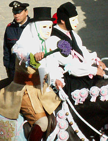 Parecchie ragazze danzano in piazza, con un bell’abito e un ampio cappello ornato di pizzi preziosi e nastri colorati: sono le mascheras limpias, quelle pulite, aggraziate, in contrasto con le mascheras bruttas, avvolte in pelli di animale, con le corna e il volto annerito dalla fuliggine, sgradevoli alla vista, che poi si mescoleranno allegramente nella confusione generale, al suono di campanacci e grida. Un dato storico molto importante ci spiega che nel corso del XVIII secolo la Chiesa operò un vero e proprio «grande assalto» alle maschere tradizionali che ricordavano troppo i riti pagani, minacciando scomuniche; fu così che in parecchie località si persero le vecchie tradizioni e nacquero appunto le maschere “belle”.