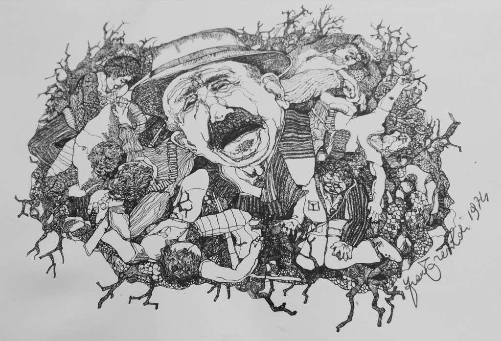 Innamorata di questa scoperta e riflettendo sempre più sul suo significato, abbandono il progetto degli esami e comincio a disegnare ininterrottamente. Partecipo così a diversi concorsi di pittura, già molto sensibile a problemi sociali e politici, sempre disegnando con questo segno libero come un ricamo.