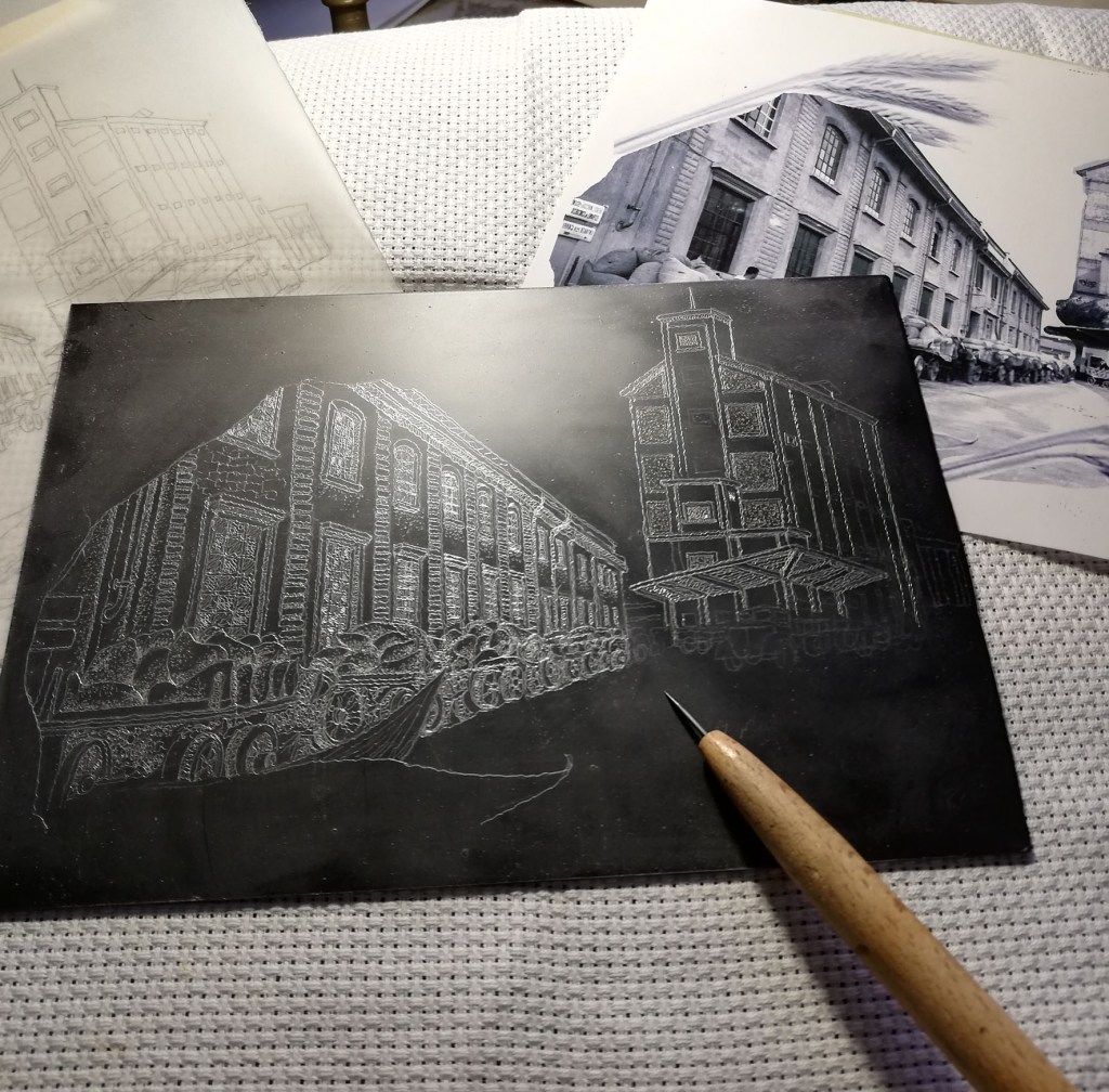 La mia strada artistica che continua, sebbene sia sempre insoddisfatta, mi ha portata a realizzare acqueforti fotografando tante città da punti di vista molto insoliti, non dimenticando i pizzi e i tappeti. È qui che recupero il lavoro delle donne che nel silenzio dei cortili e delle case ricamavano corredi per le spose.