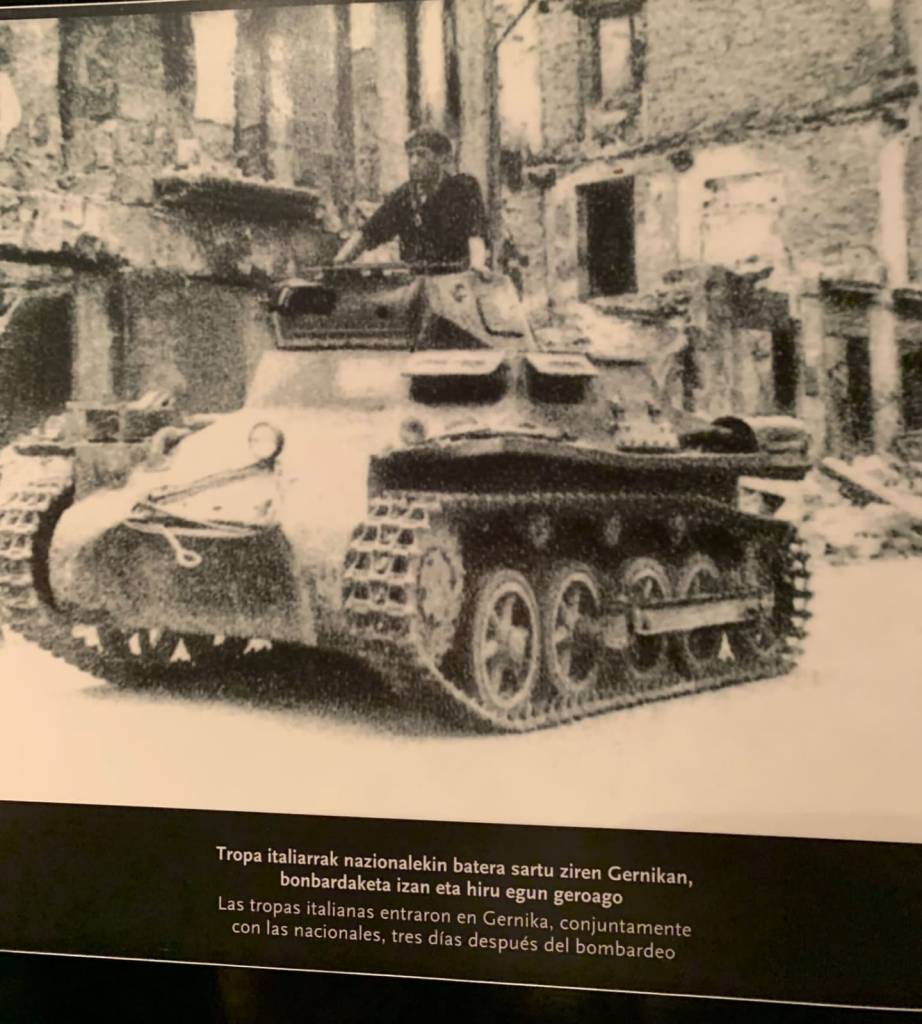 Trenta sono i chilometri che separano Bilbao da Gernika-Lumo, città sacra per i baschi, nella provincia di Biscaglia; impossibile non andare a vedere com’è oggi e a capire perché era stata presa di mira così ferocemente quel lunedì 26 aprile 1937. È una cittadina di poco più di 15.000 abitanti con diversi punti importanti da visitare, poiché è il punto nevralgico della cultura basca, con il museo basco, sede del governo provinciale, in stile neoclassico, col tetto vetrato e con l’inscrizione di tutte le cittadine basche; nel giardino vi è la vecchia quercia che fu il luogo di incontro dei rappresentanti della comunità basca e del giuramento del sindaco Aguierre nel 1936, fedele alla repubblica. La vittoria di Franco lo costrinse all’esilio, ma in seguito poté sostenere la costituzione dell’unità europea. In centro alla città di Gernika vi è il museo della pace che documenta con dovizia di particolari l’attacco del ’37; si cammina sui calcinacci della città bombardata ricoperti da pavimento di vetro, vi sono fotografie, filmati di quei giorni, documenti autentici.