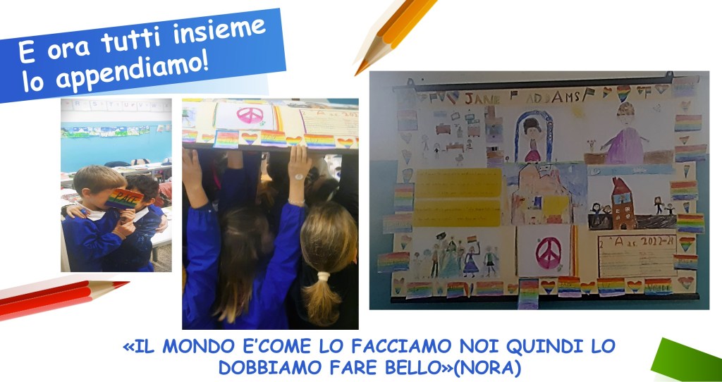 Al Concorso Sulle vie della parità partecipano anche classi degli Istituti comprensivi, in cui vi sono scuole che vanno dall’infanzia alla secondaria di primo grado (si possono leggere qui tutti i lavori migliori finora pubblicati nella rubrica Percorsi). Sembra impossibile, in realtà arrivano progetti articolati, complessi e ben realizzati anche da classi con alunni e alunne di tenerissima età, guidate, non occorre neanche dirlo, da maestre e maestri eccezionali: qui gli esempi di scuola dell’infanzia.