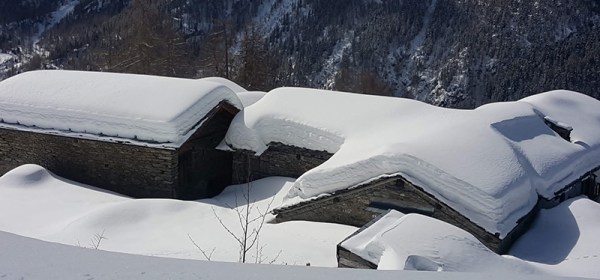 Il 25 dicembre in val d’Ayas è caduta la neve. Il giorno dopo abbiamo calzato le nostre ciaspole rosse e siamo andati lungo il torrente