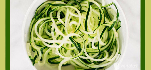 Una “spaghettata” insolita, fresca e idratante Ingredienti per 4 persone 5 zucchine chiare, piuttosto grandi 100 grammi di mortadella 1 piccola manciata di gherigli di
