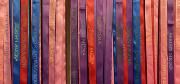 Avvicinandosi alla Galleria d’Arte Moderna di Milano può capitare di incontrare una persona con un nastro colorato, con sopra impressa una frase come questa: «Femminismo